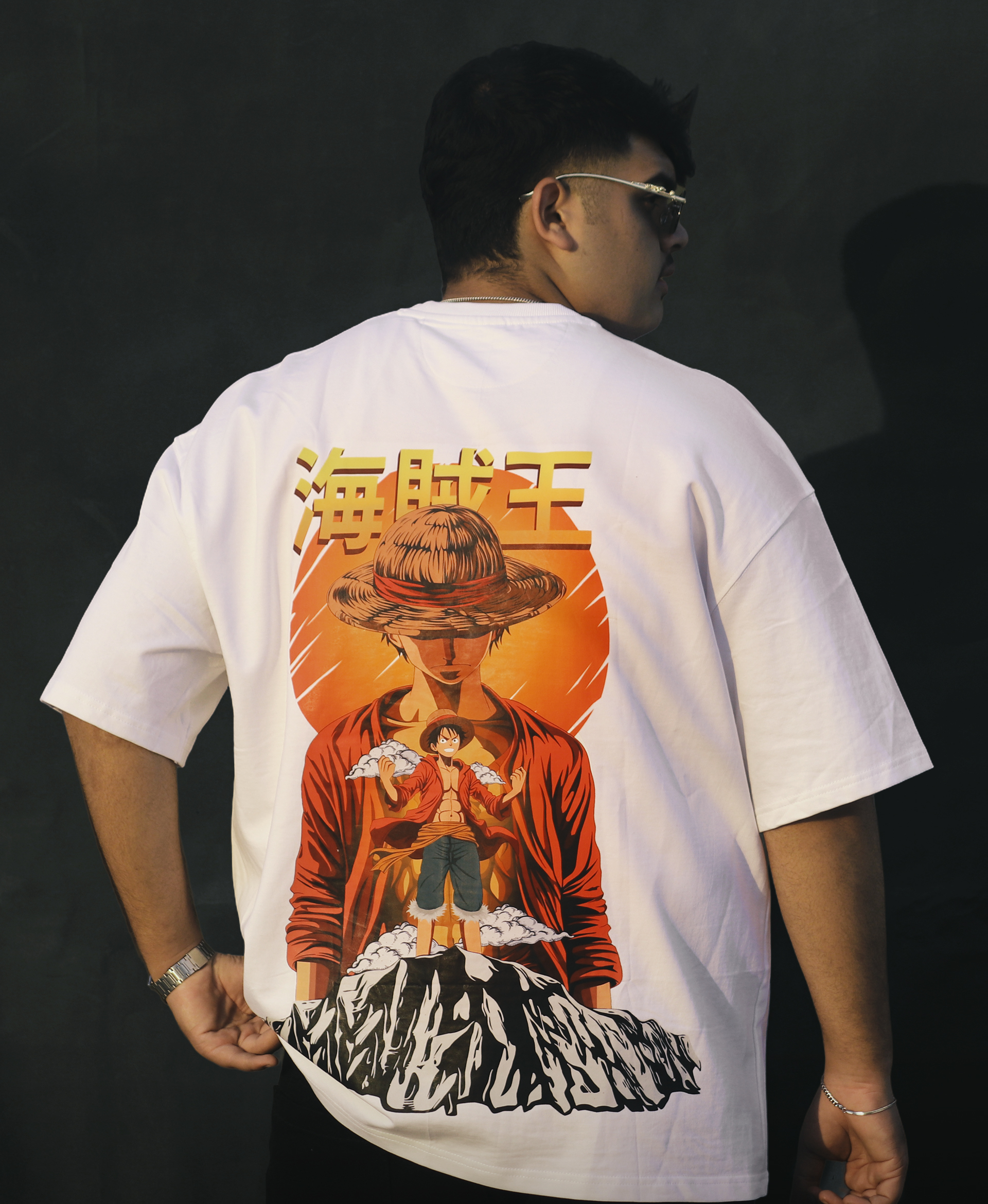 This oversized t-shirt is a bold tribute to freedom, ambition, and the spirit of adventure. Crafted from premium cotton for a soft yet structured feel, it delivers a relaxed silhouette made for modern streetwear. The front features a clean, minimal typographic detail inspired by iconic pirate ideology, while the back showcases a striking illustrated One Piece artwork symbolizing determination, dreams, and the journey to the top. Rich colors and high-quality print techniques bring depth and durability to the design. Created for anime lovers and culture-driven individuals, this piece blends storytelling with elevated fashion—made to stand out without saying a word.