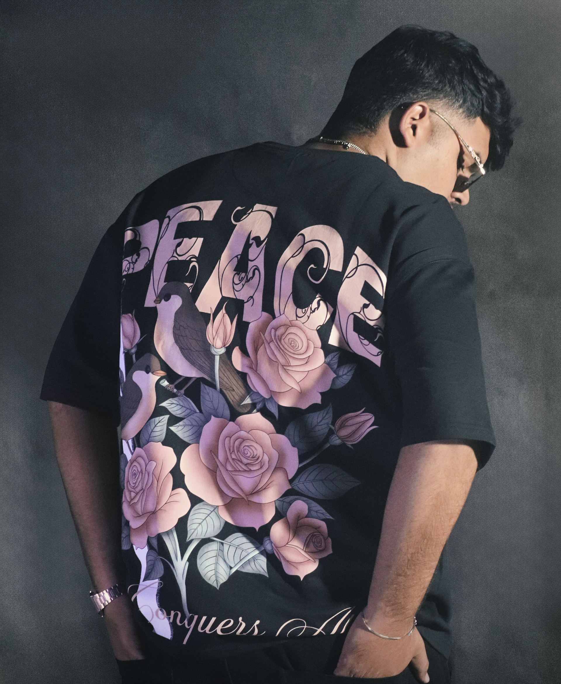 A refined expression of modern street luxury. This oversized t-shirt features a subtle Blackcultr chest mark paired with an intricately illustrated back artwork symbolizing peace, love, and timeless emotion. Crafted from premium, soft-touch fabric with a relaxed silhouette, it delivers elevated comfort with a gallery-worthy aesthetic. Designed for those who appreciate detail, depth, and culture woven into every thread.